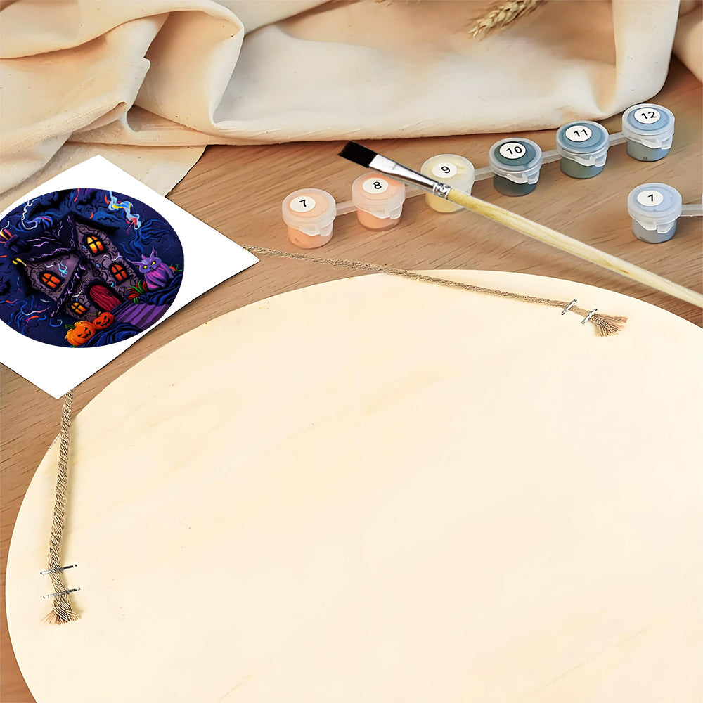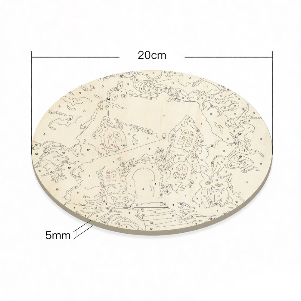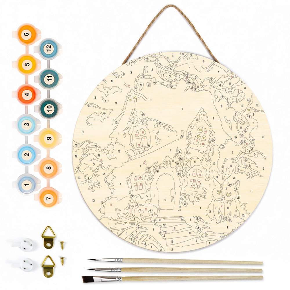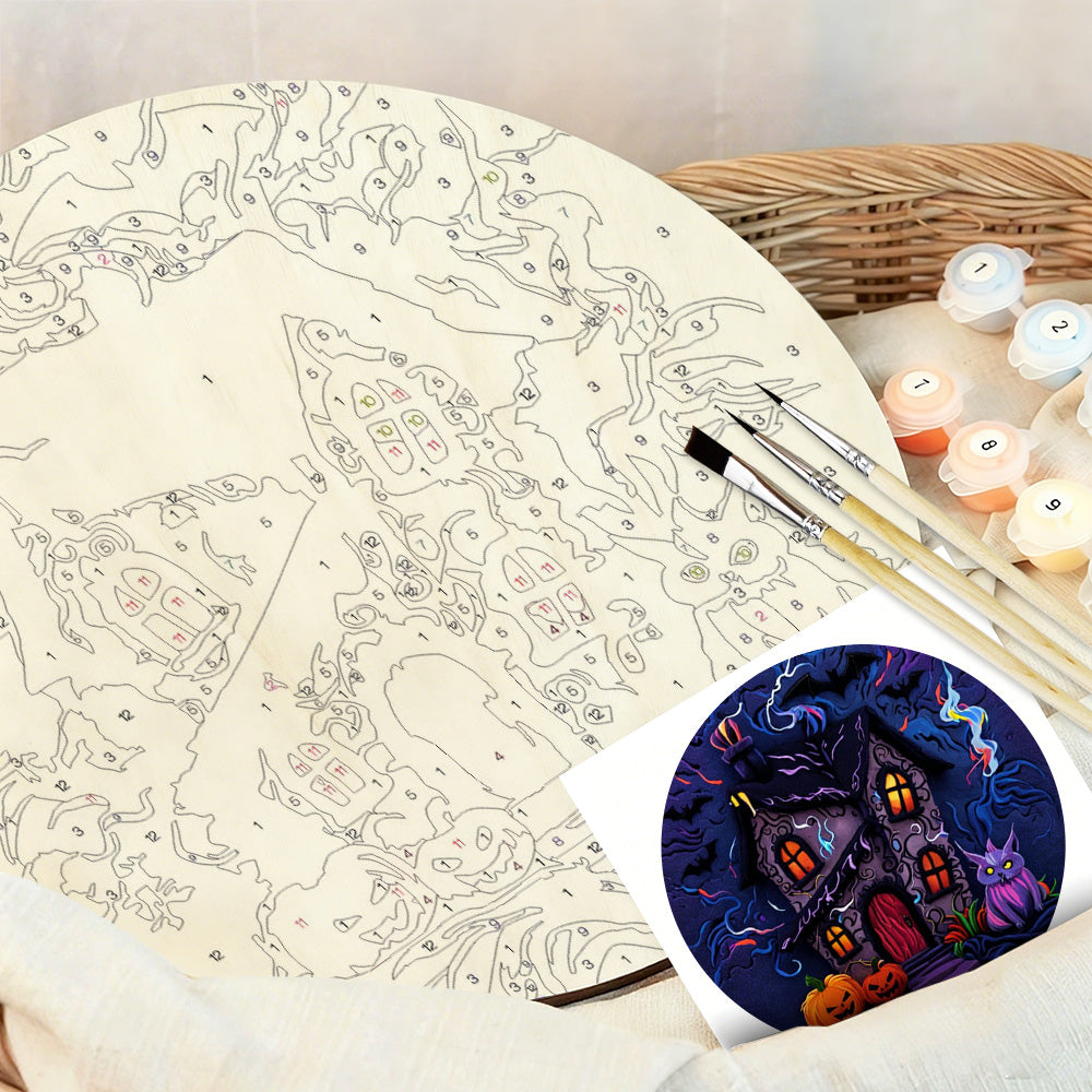 Pintar por Números en Rodaja de Madera - Terrorífico Castillo de Halloween
