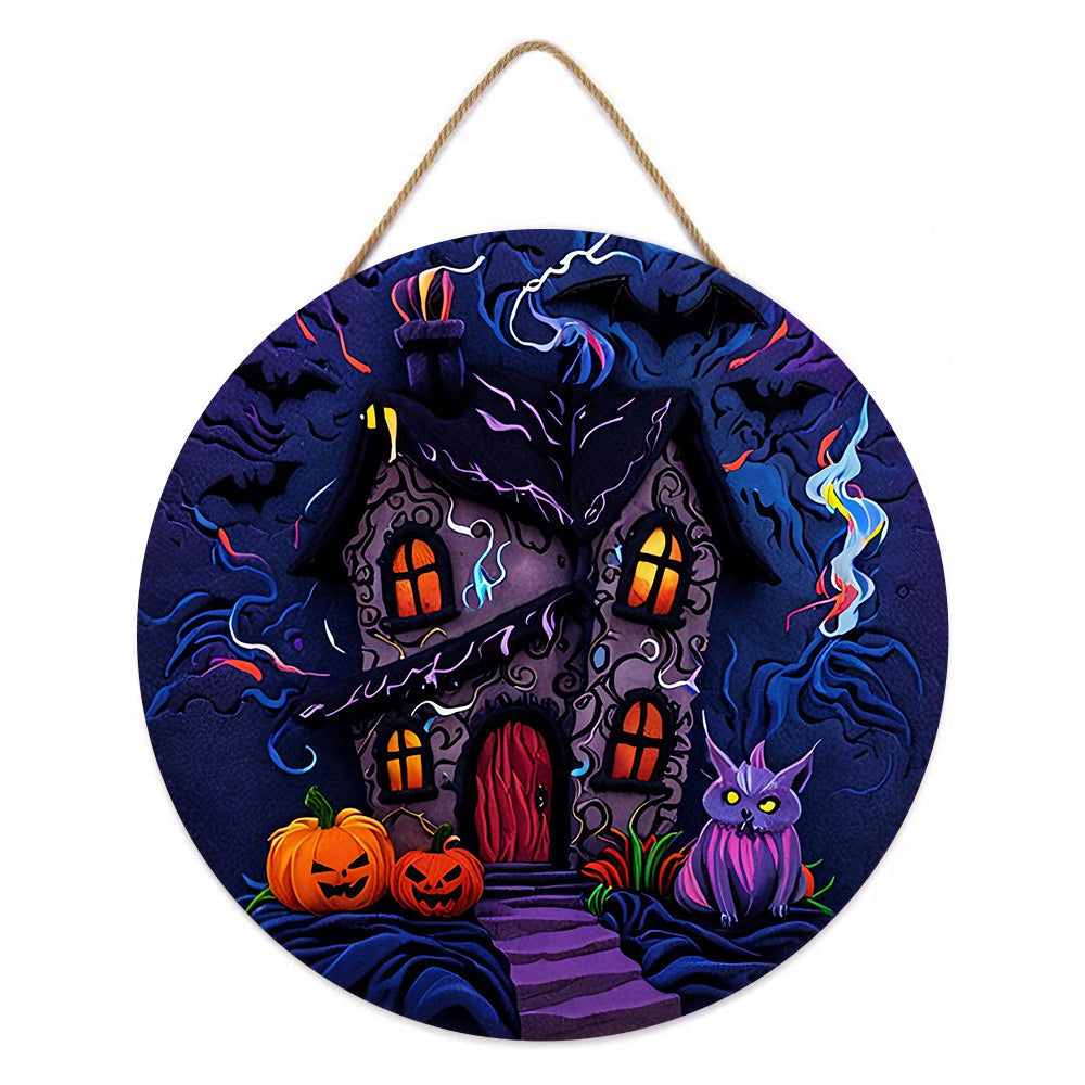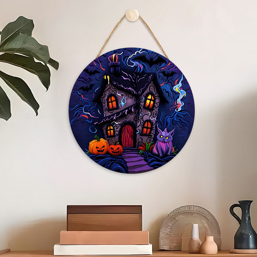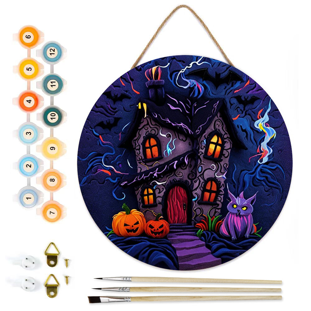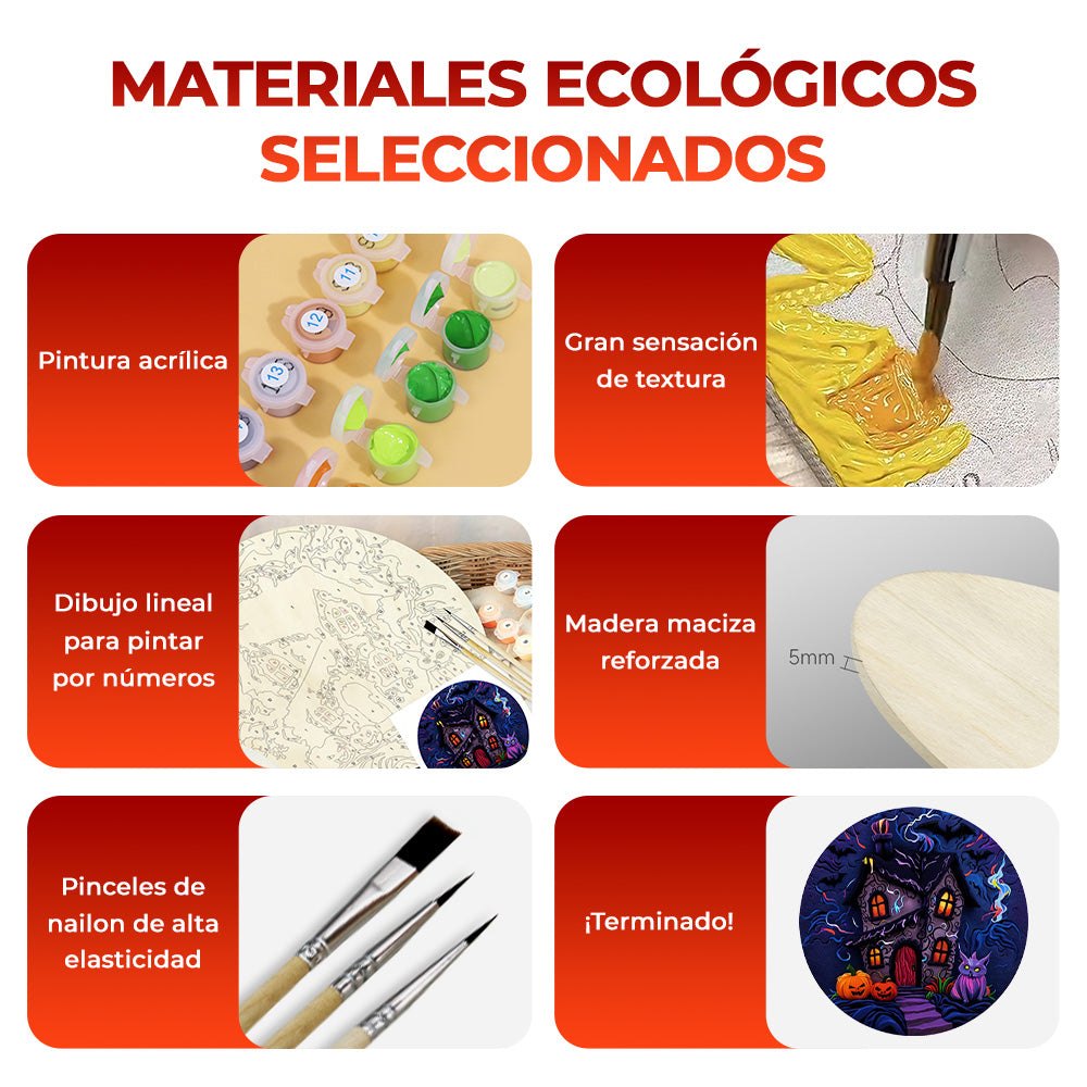 Pintar por Números en Rodaja de Madera - Terrorífico Castillo de Halloween