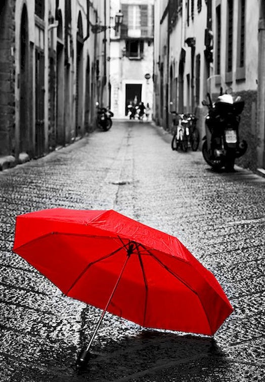 Paraguas Rojo en Callejón Blanco y Negro Pintar por Números