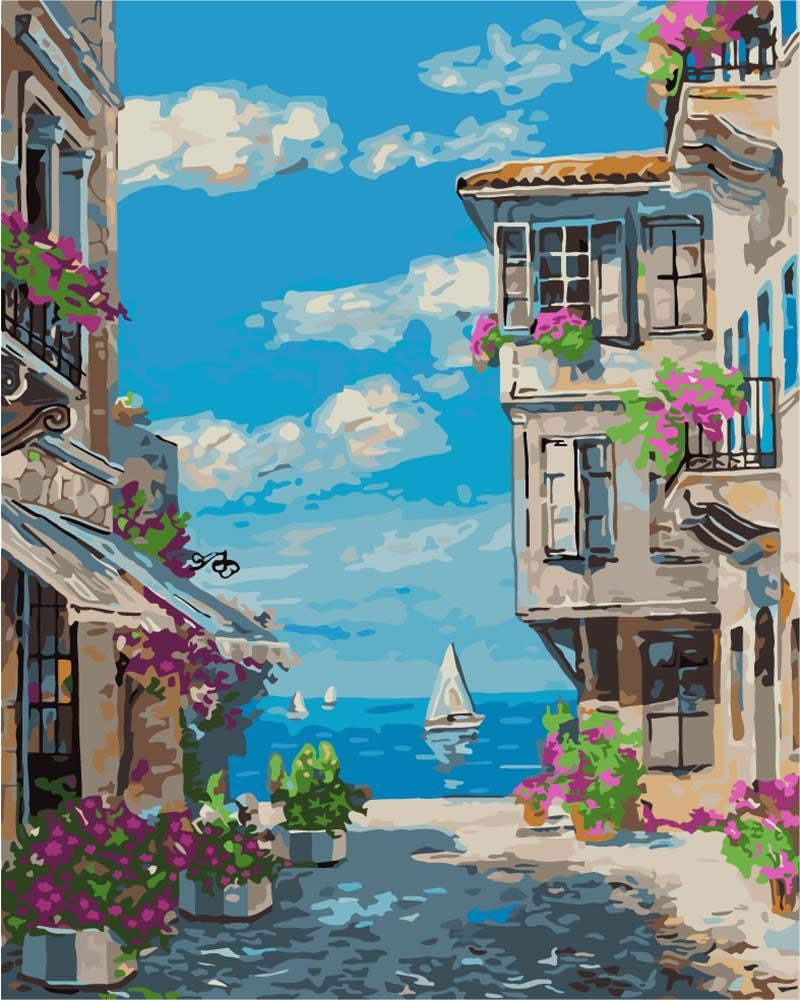 Pueblo con Flores a Vistas al Mar Pintar por Números