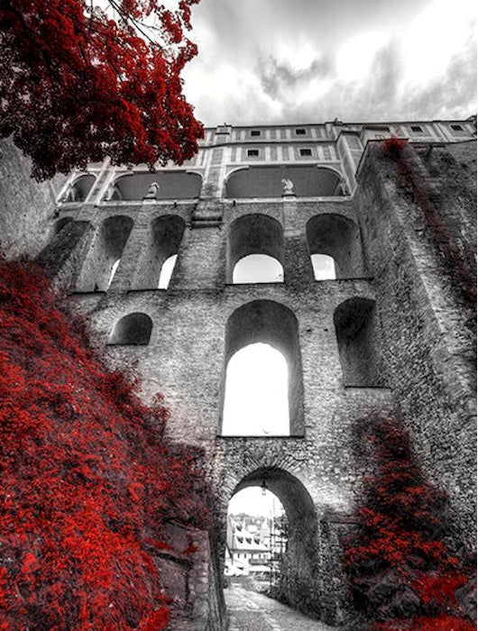 Árboles Rojos y Arquitectura Gris Pintar por Números