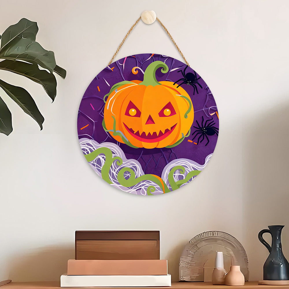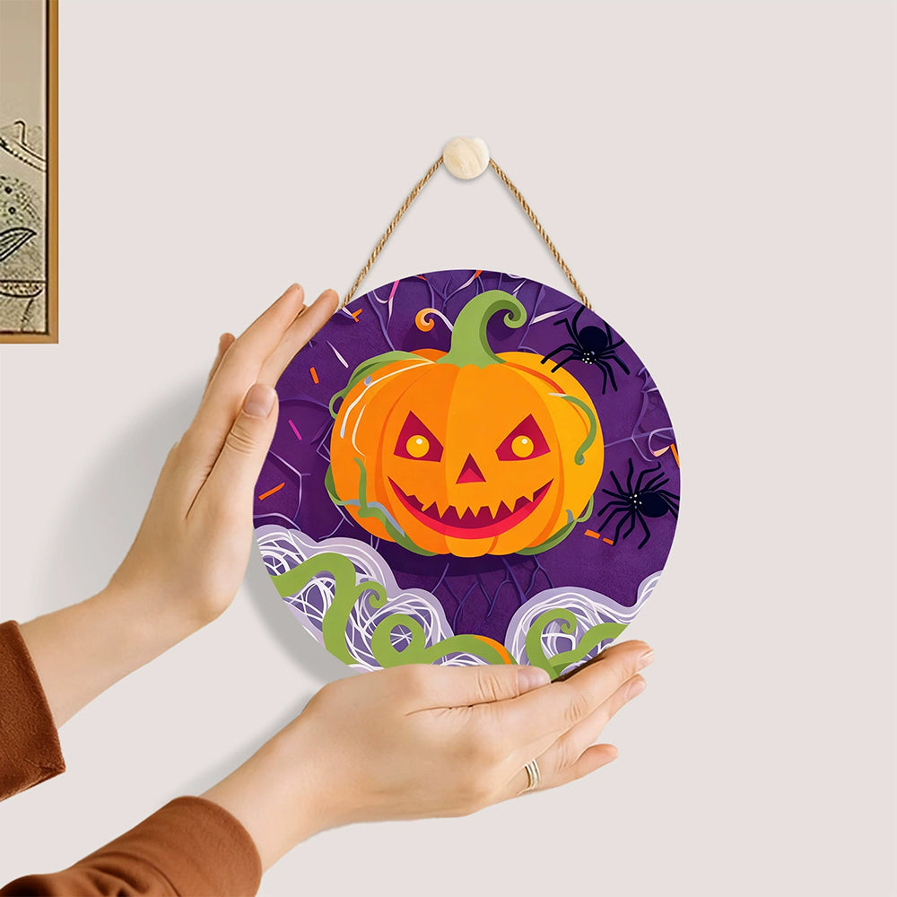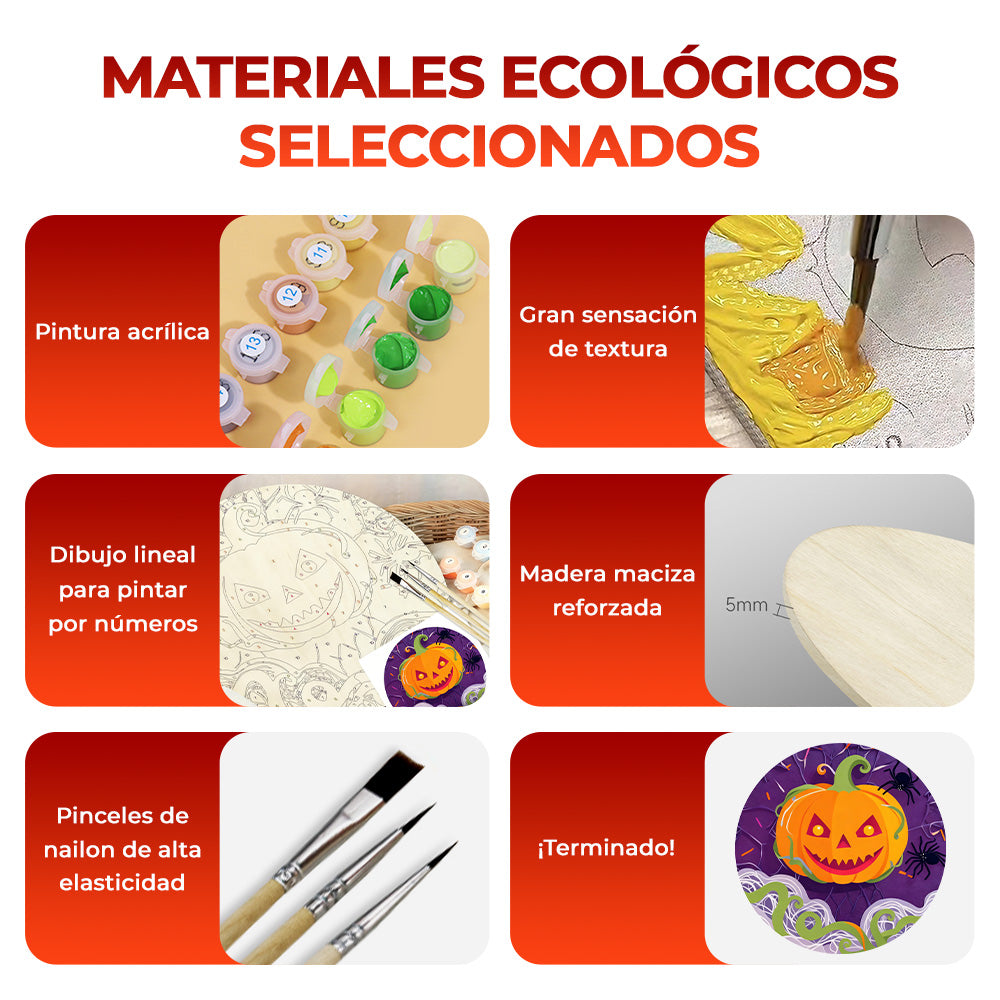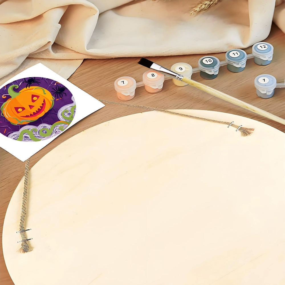 Pintar por Números en Rodaja de Madera - Calabaza Malvada y Arañas Negras