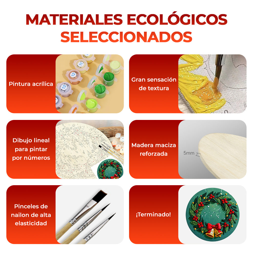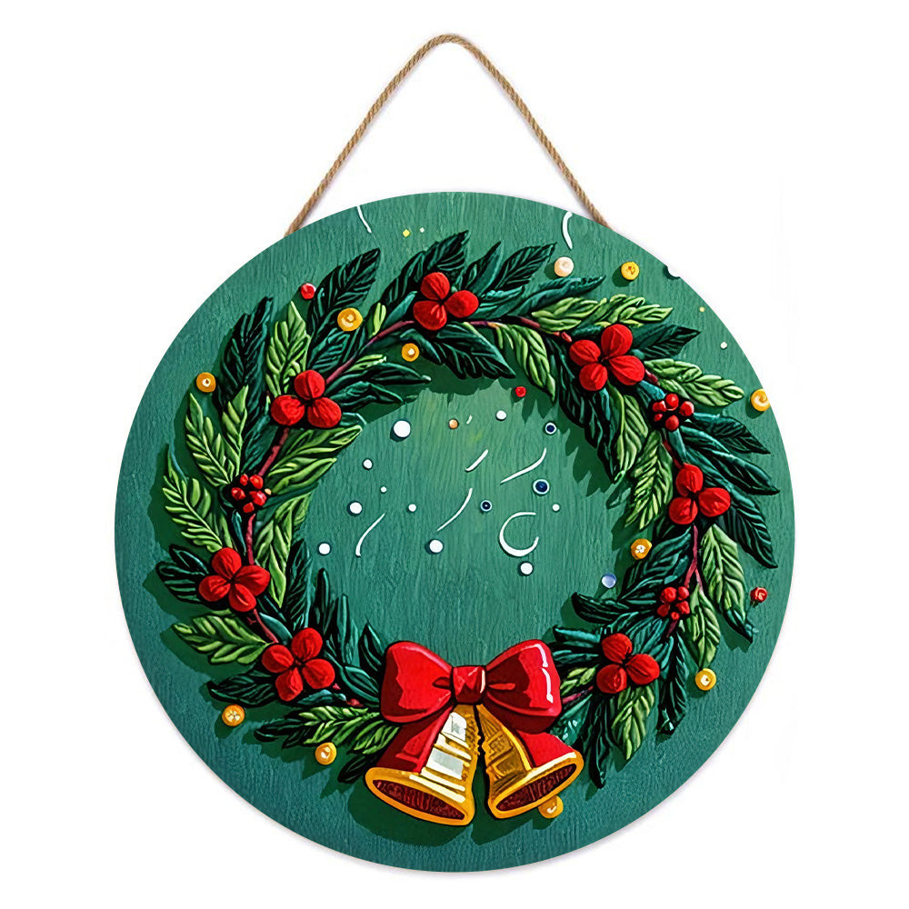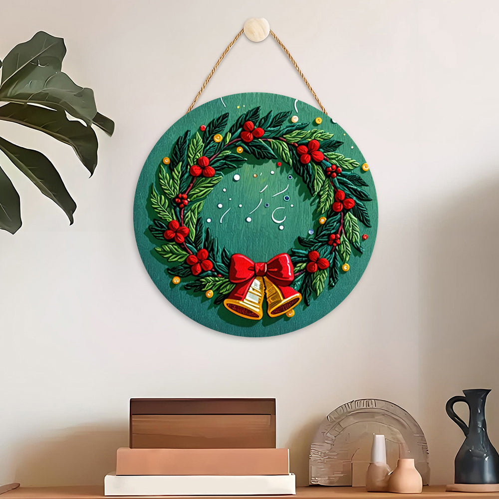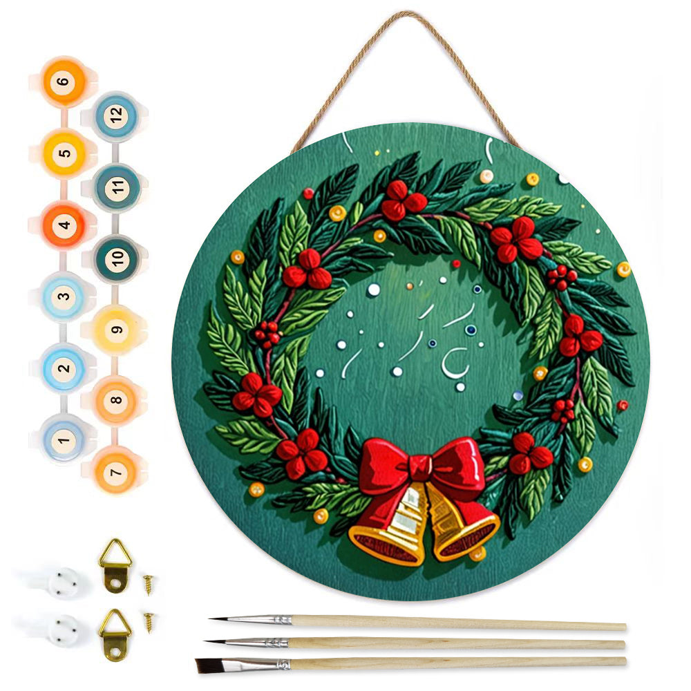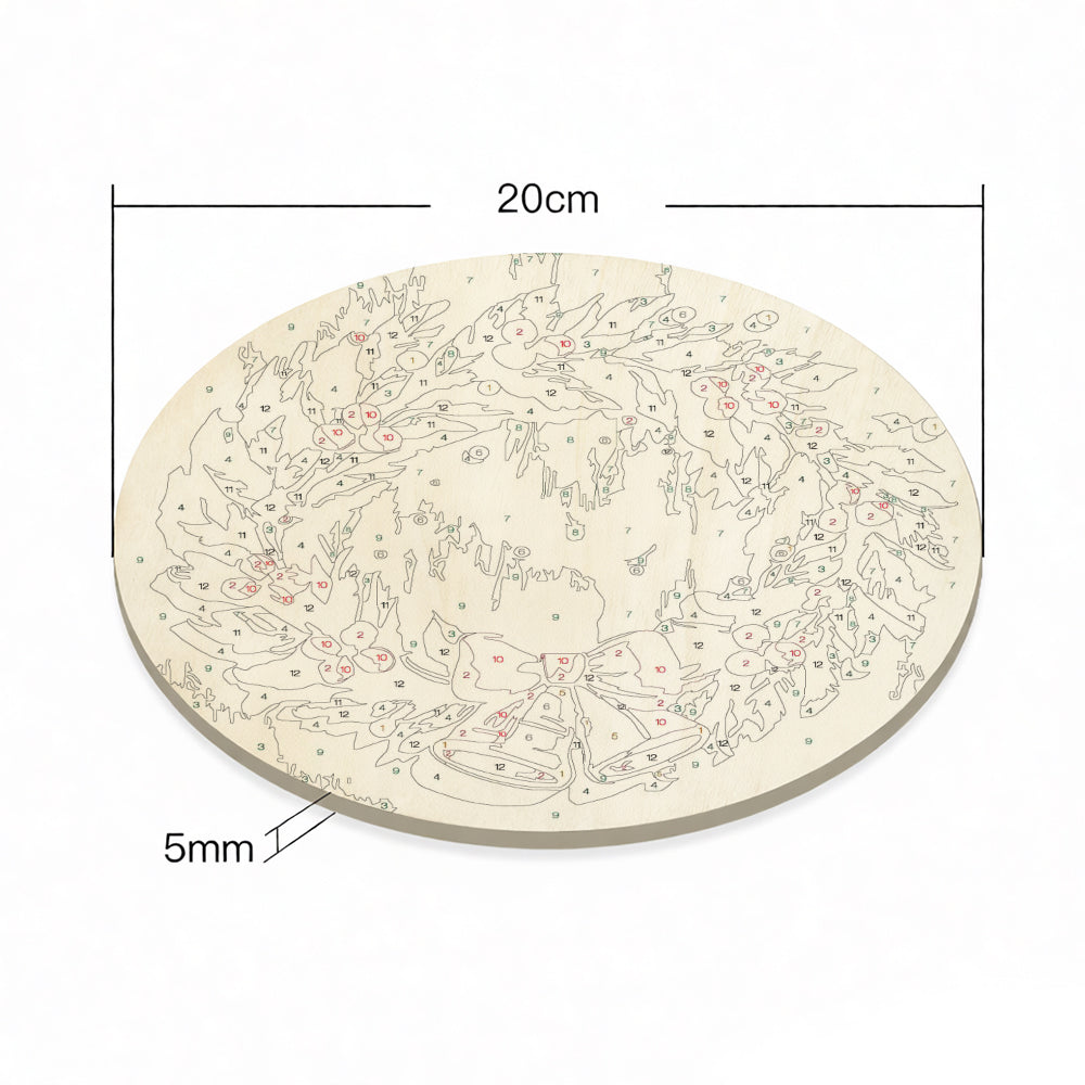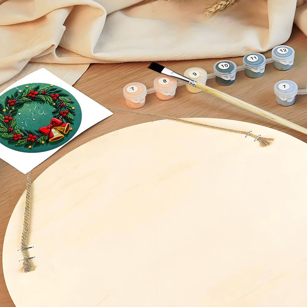 Pintar por Números en Rodaja de Madera - Corona de Navidad con Campanas