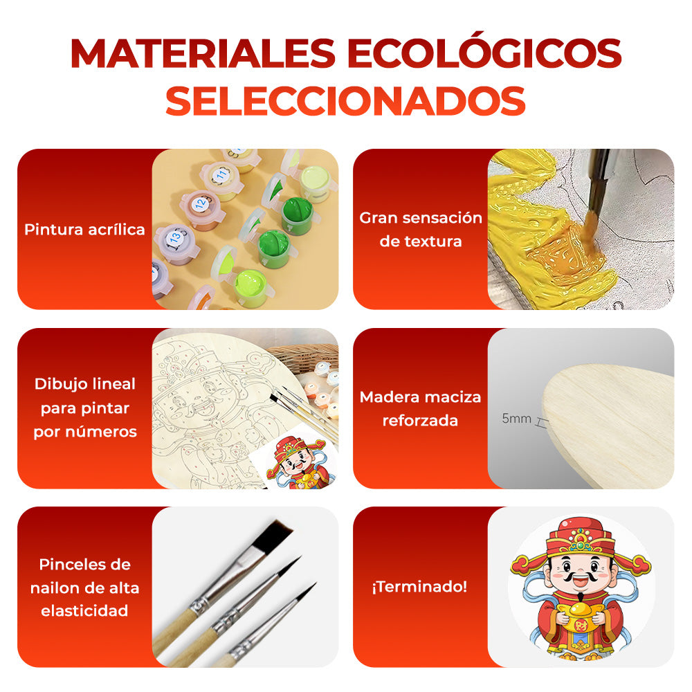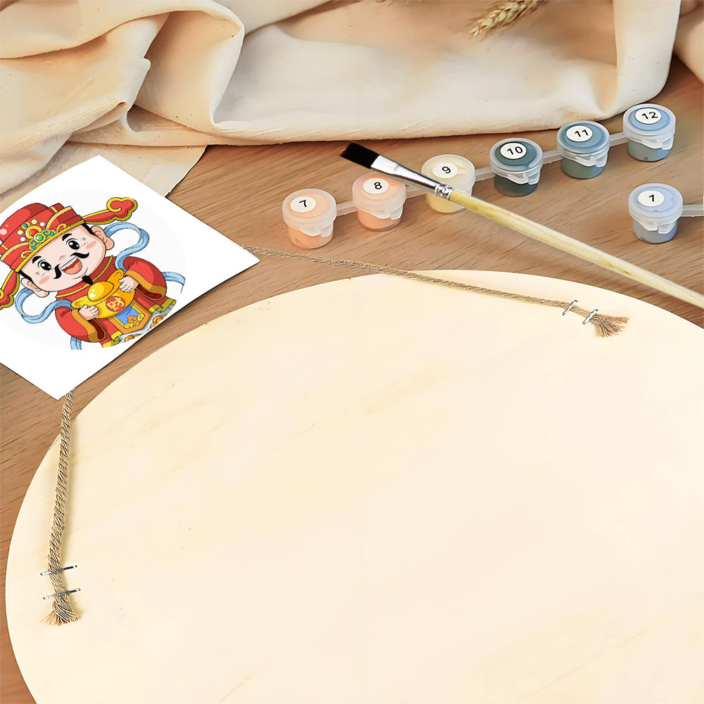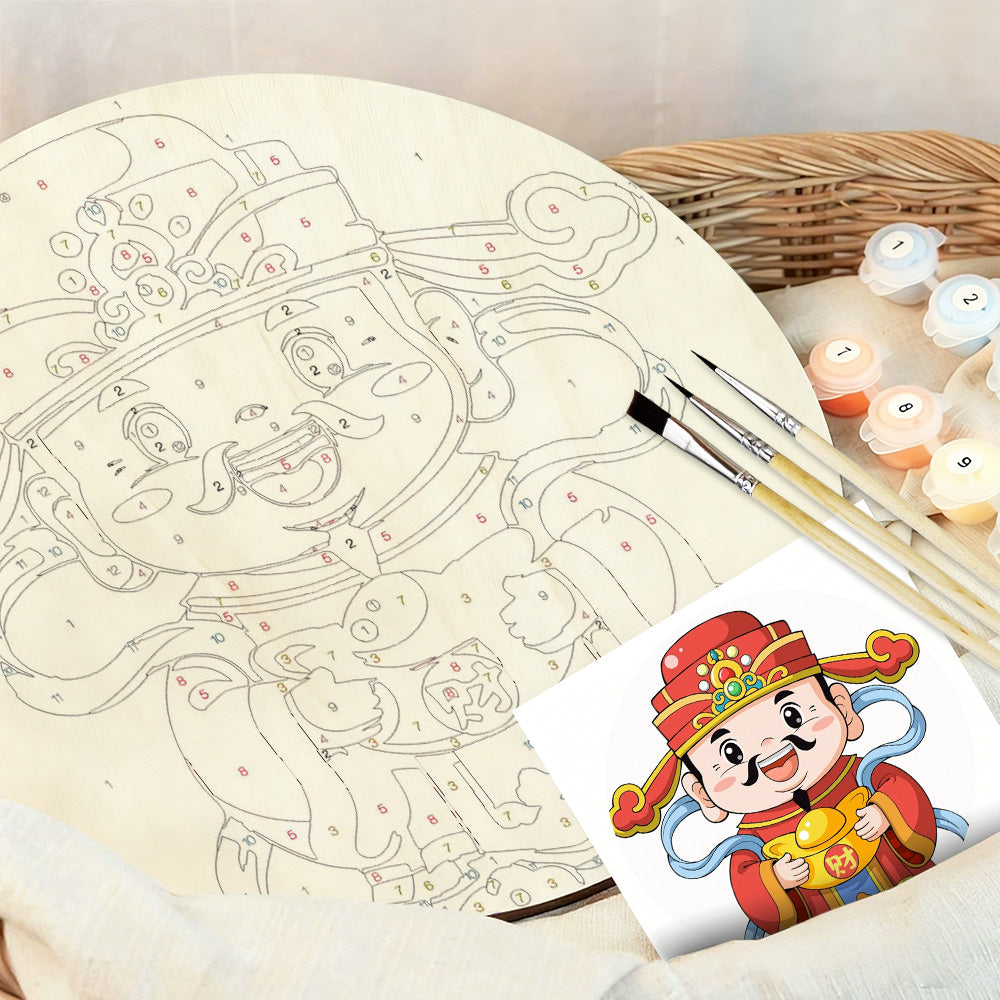 Pintar por Números en Rodaja de Madera - Dios de la Riqueza