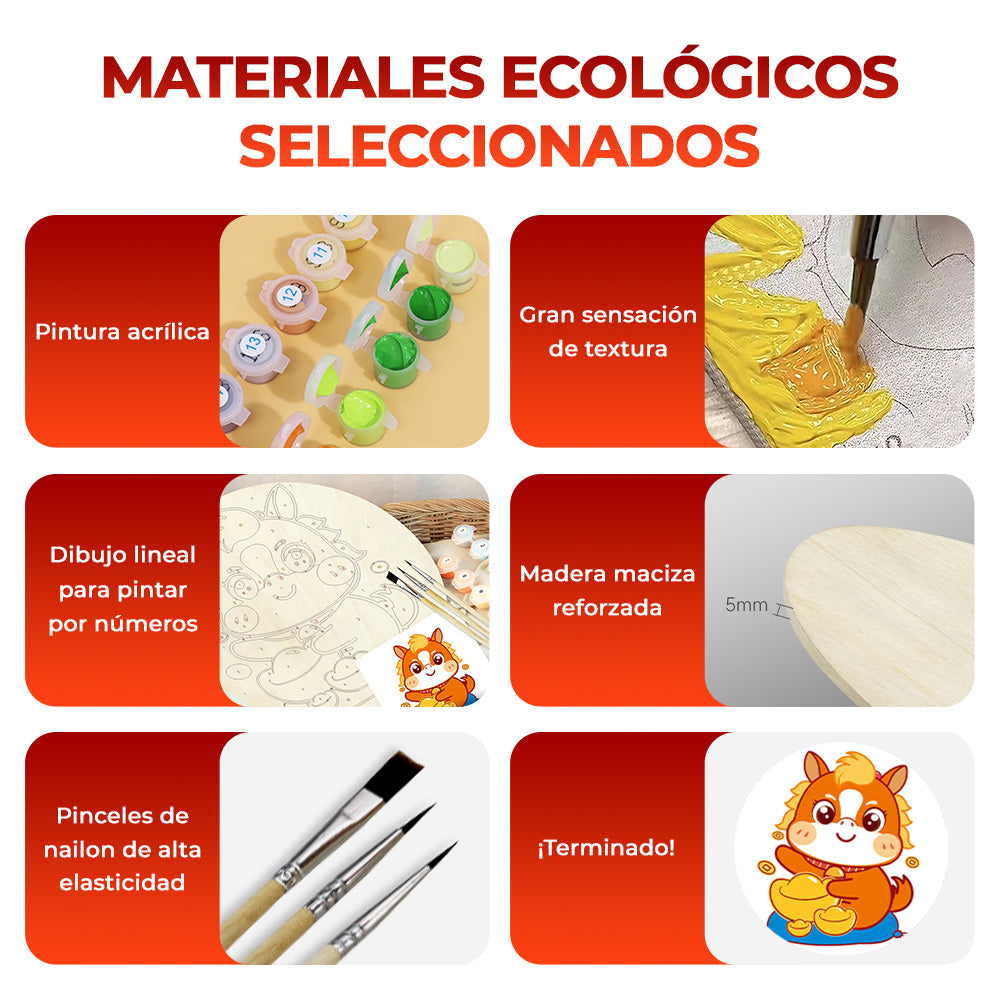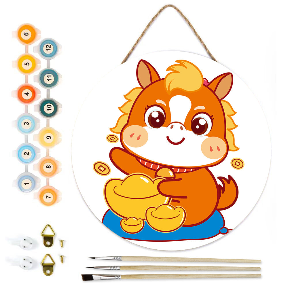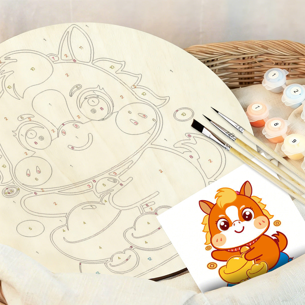 Pintar por Números en Rodaja de Madera - Lingotes de Oro del Año del Caballo
