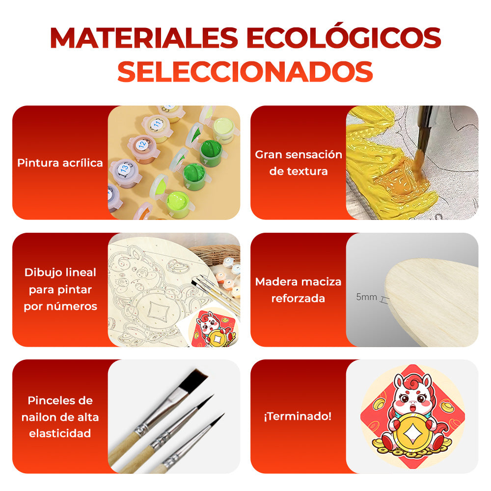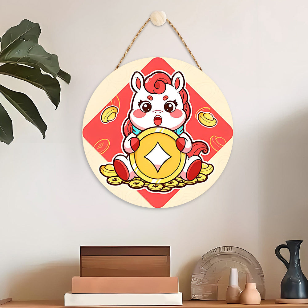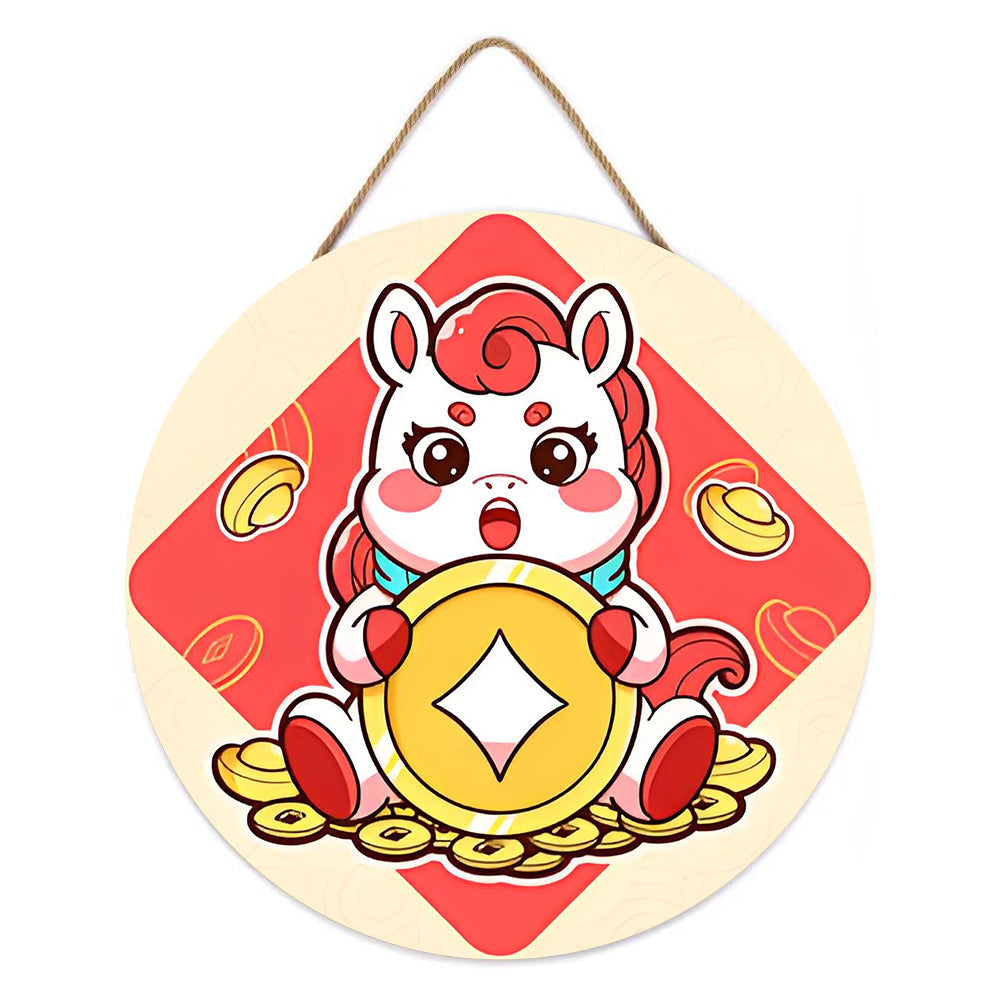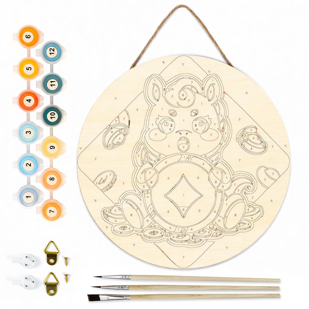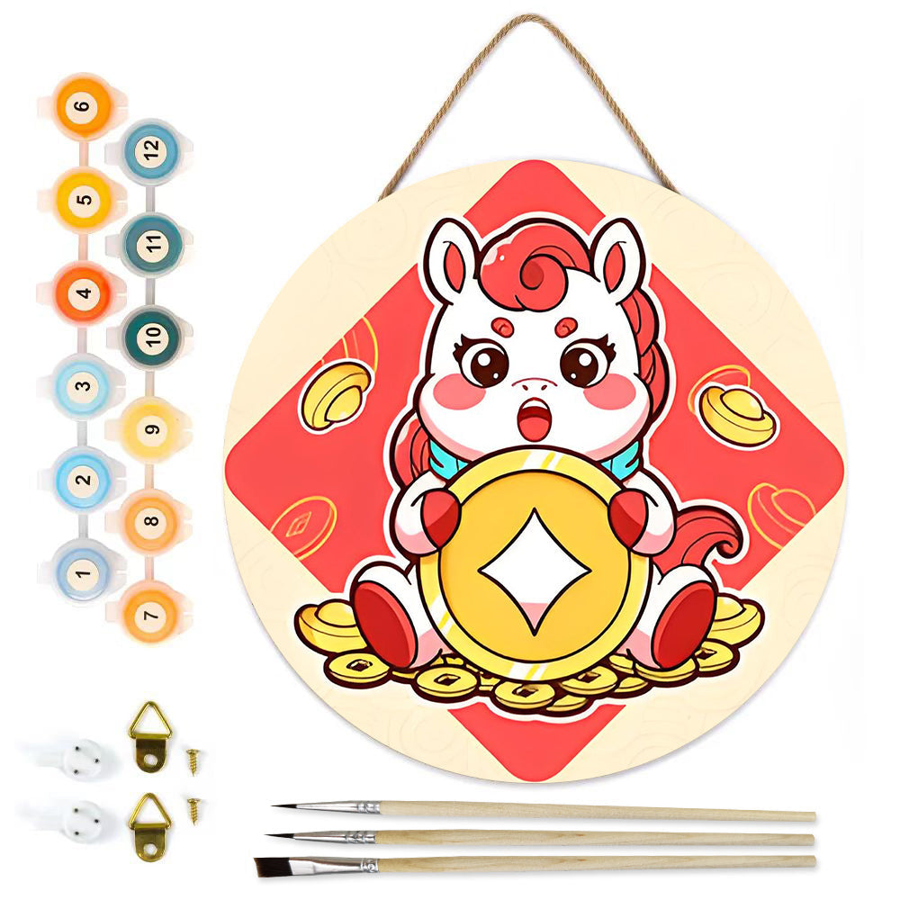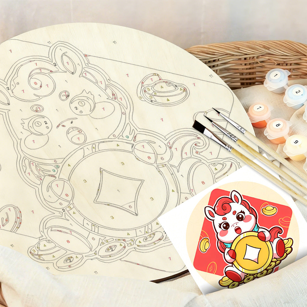 Pintar por Números en Rodaja de Madera - Monedas de Cobre del Año del Caballo