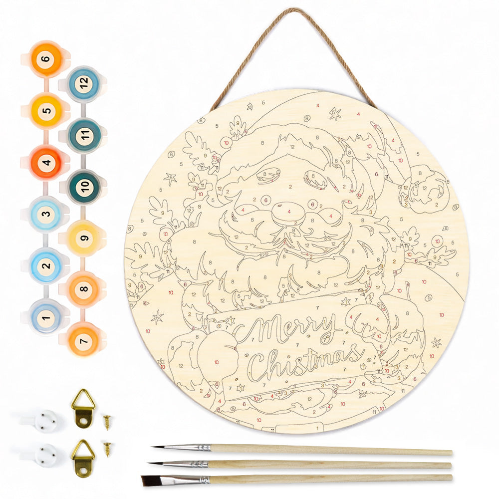 Pintar por Números en Rodaja de Madera - Papá Noel