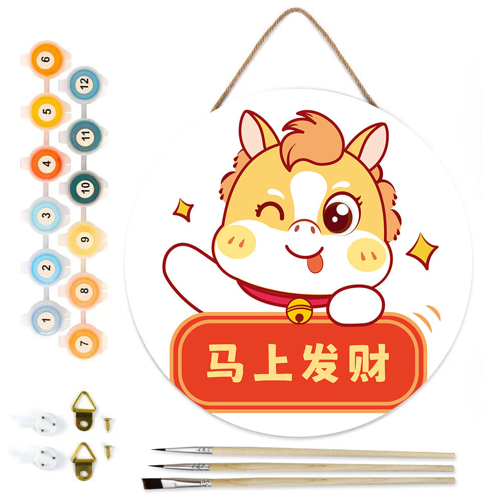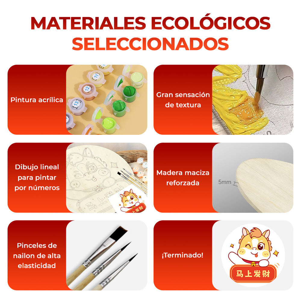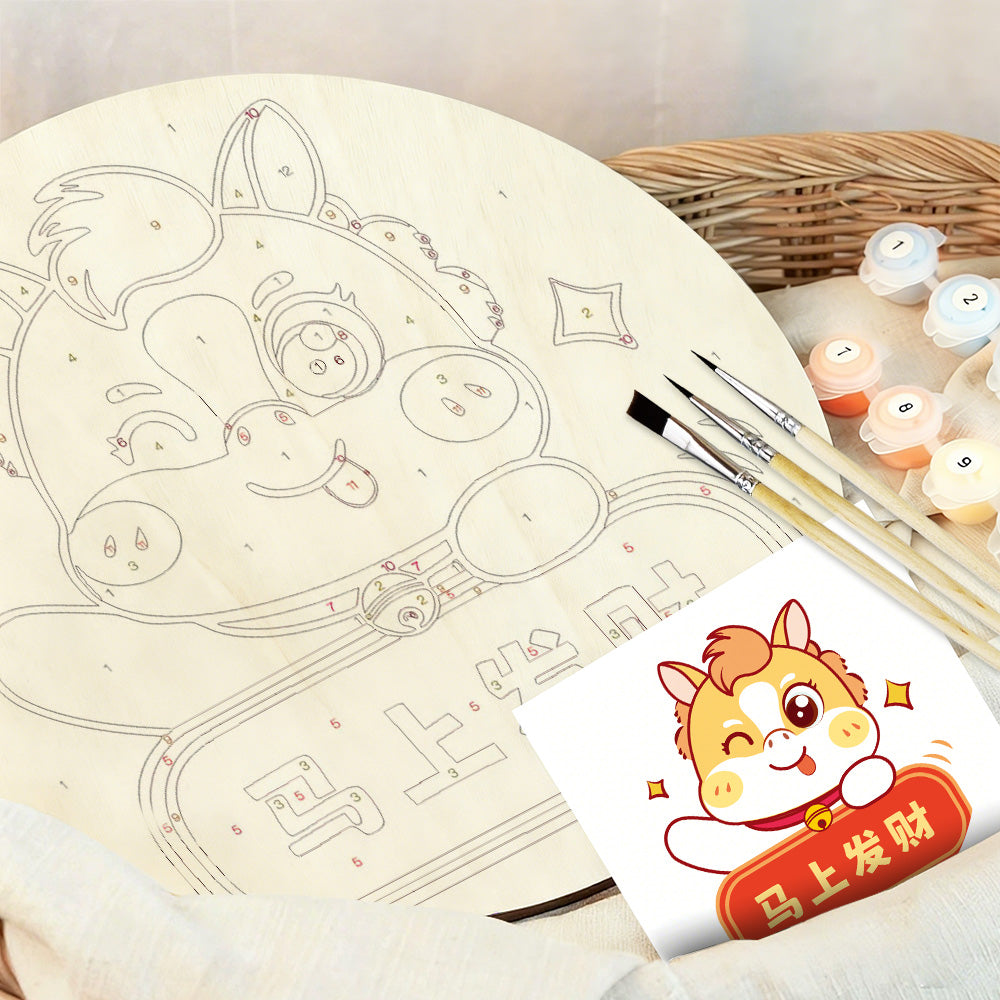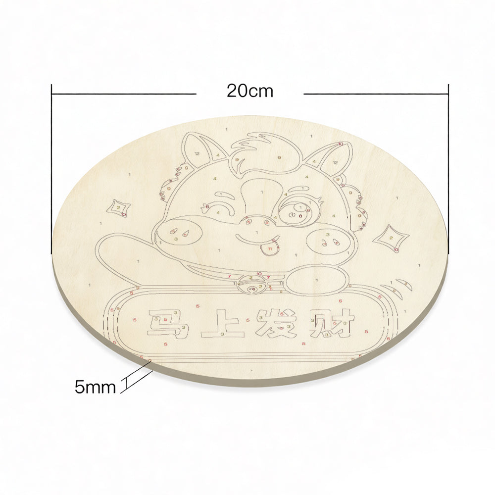 Pintar por Números en Rodaja de Madera - Riqueza del Año del Caballo