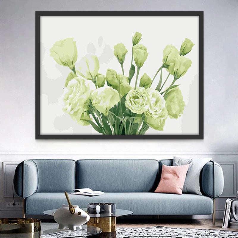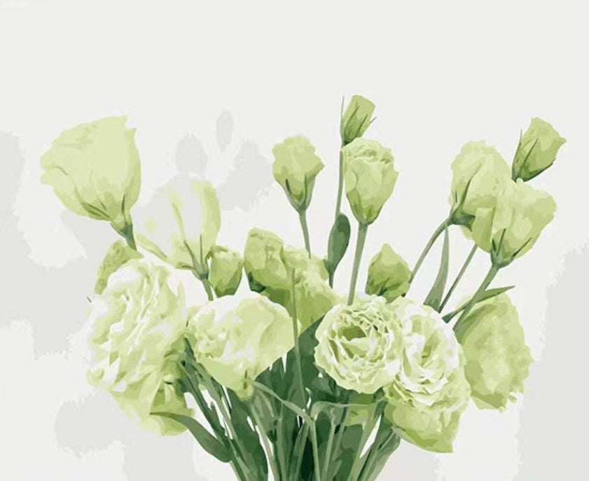 Ramo de Flores Verdes Claras en el Fondo Blanco Pintar por Números