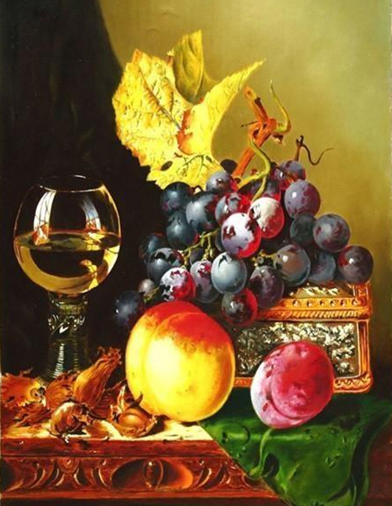 Vino Blanco en Copa Alta y Frutas Pintar por Números