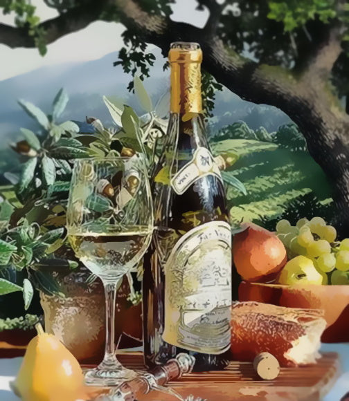 Mesa con Frutas y Vino en el Valle Pintar por Números