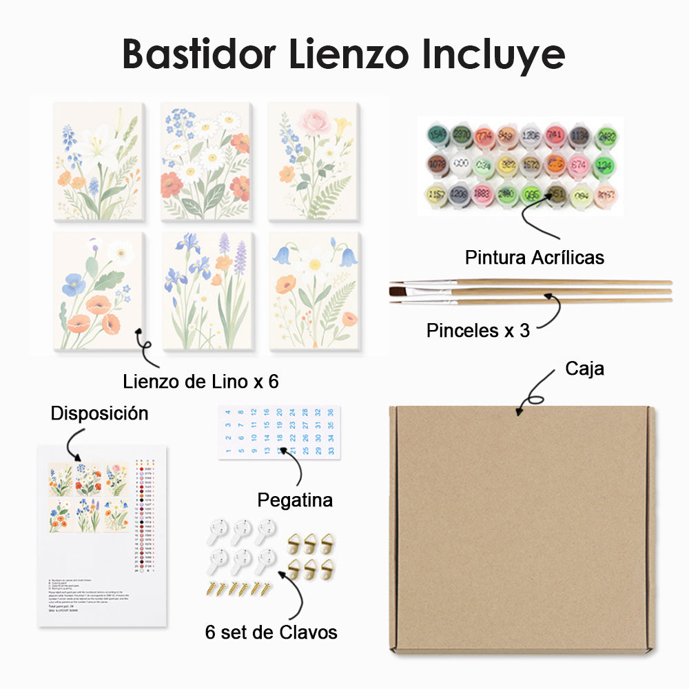 Flores y Hojas Simples y Puras 6 Partes Mini Pintar por Números