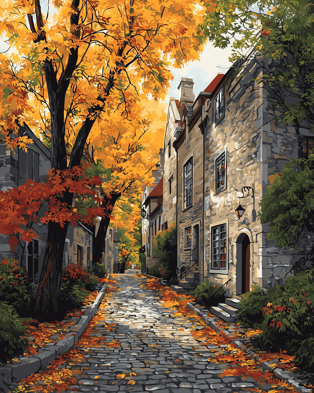 Árboles de Otoño y Casas en Ciudad Pintar por Números