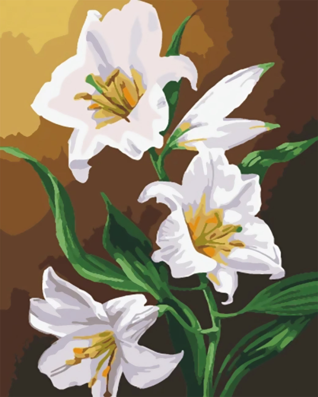 Pintura al Óleo de Lirios Blancos con Hojas Verdes Pintar por Números