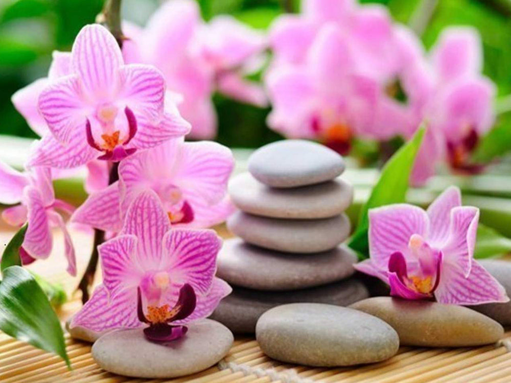 Orquídeas Moradas y Guijarros Redondos Pintar por Números