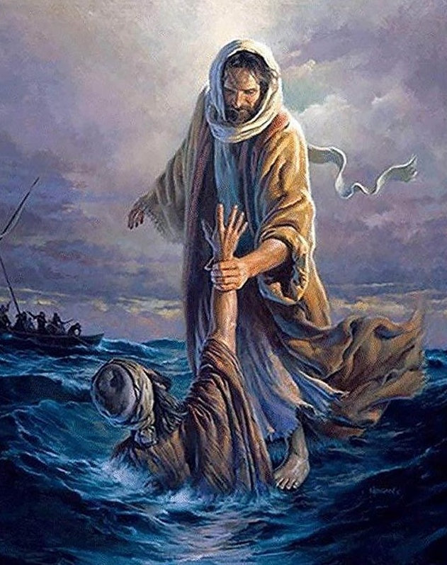 Jesús Salvando Hombre en Tormenta Pintar por Números