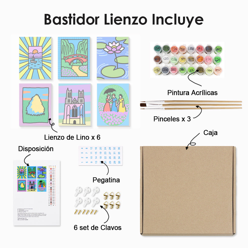 Este kit de pintar por números contiene todo lo necesario para realizar tu obra de arte: