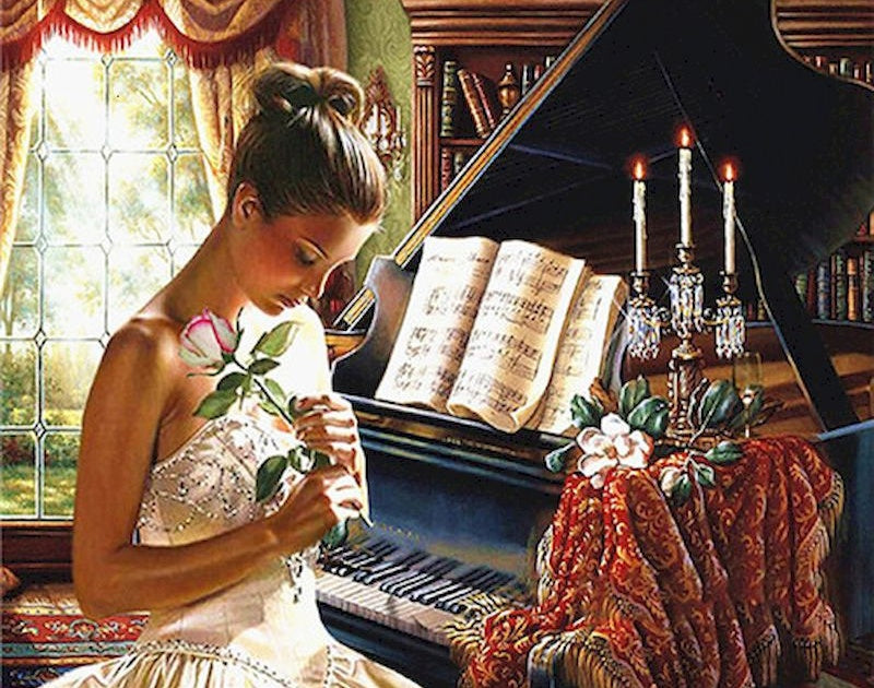 Mujer con Rosa al Lado del Piano Pintar por Números