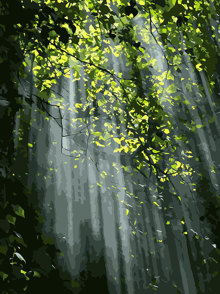 Hojas Verdes al Sol en el Bosque Oscuro Pintar por Números
