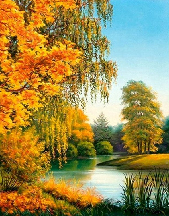 Árboles de Otoño a Orillas del Río Pintar por Números