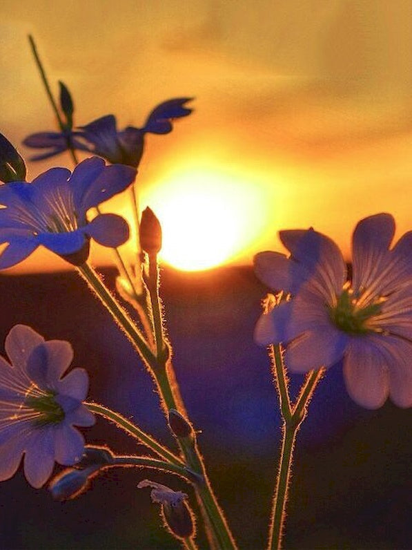 Flores Moradas y la Puesta del Sol Pintar por Números