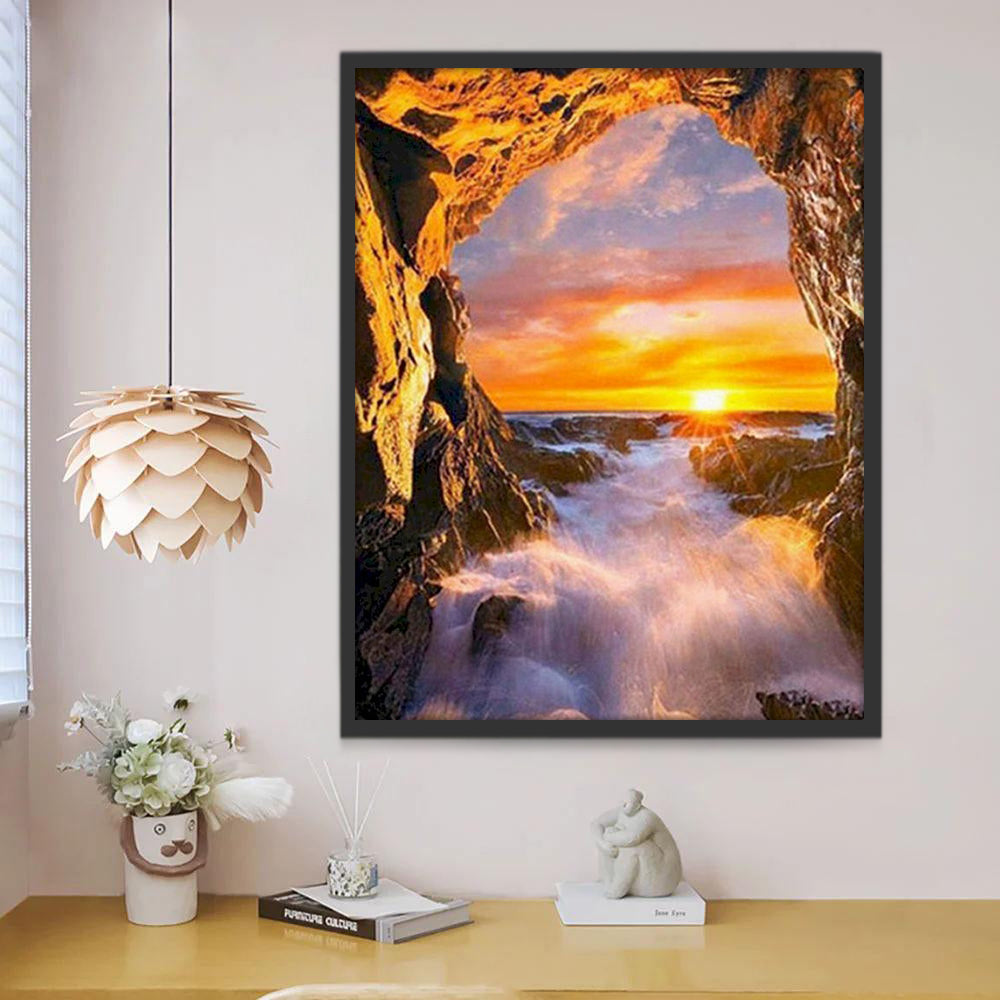 Cueva y Arroyo y Puesta del Sol Pintar por Números