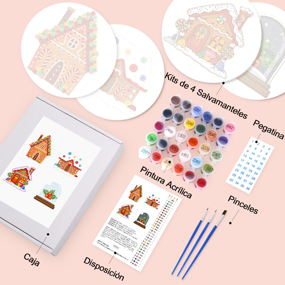 Castillo Navideño de Dibujos Animados 4 Salvamanteles Pintar por Números