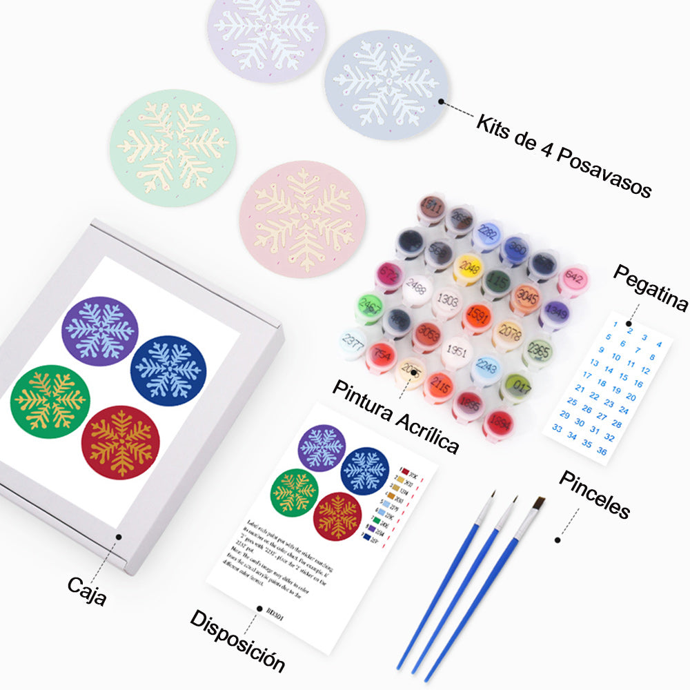 Copo de Nieve de Navidad 4 Posavasos Pintar por Números