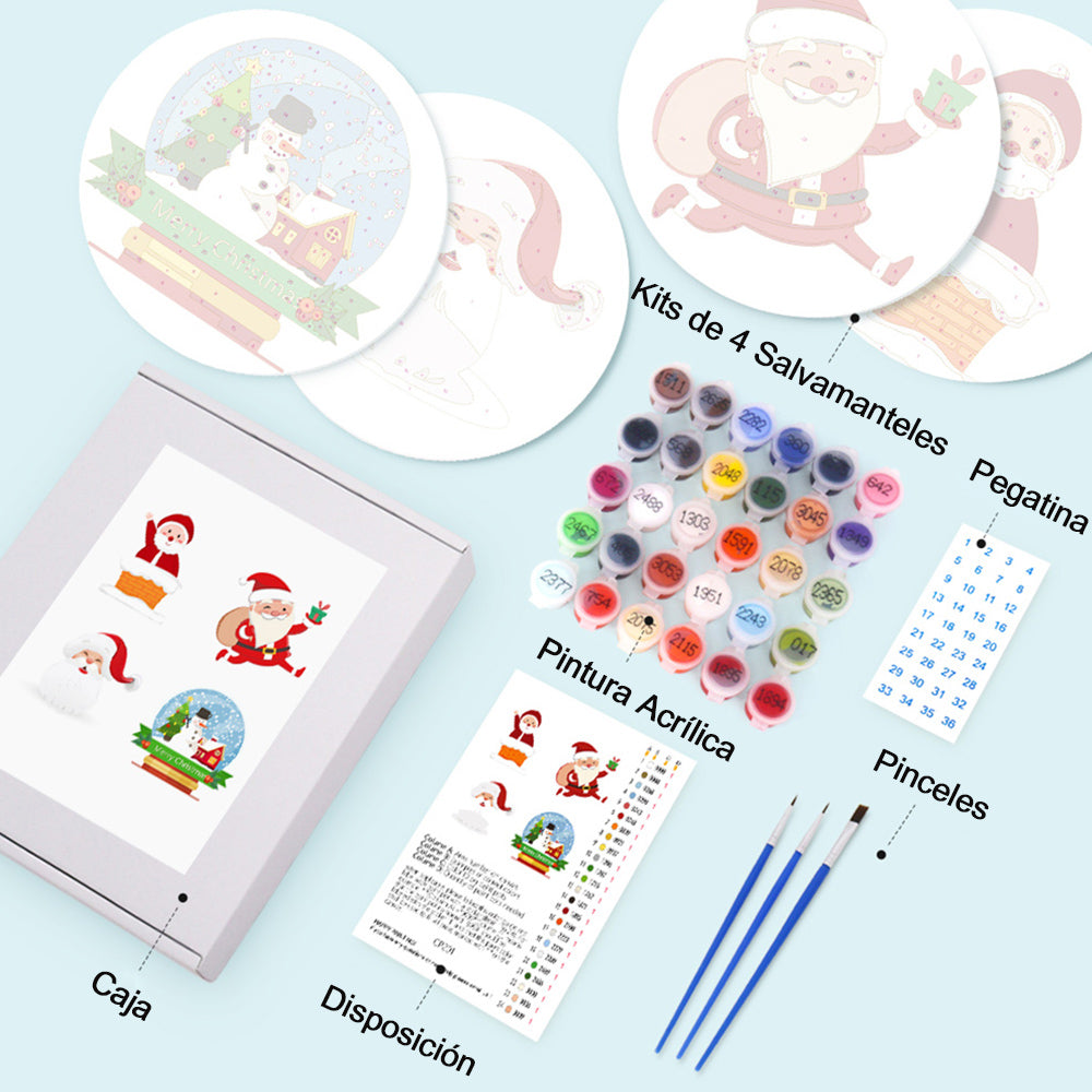 Papá Noel Feliz 4 Salvamanteles Pintar por Números
