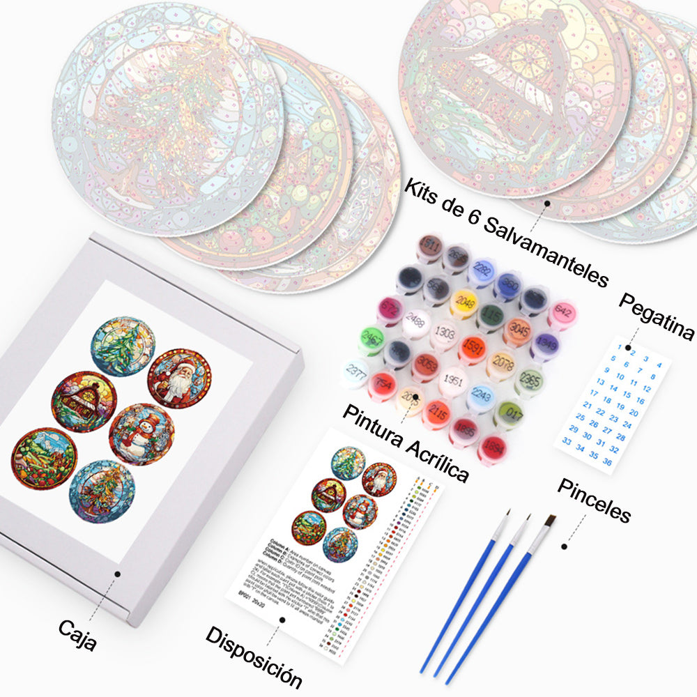 Papá Noel y Árbol de Navidad 6 Salvamanteles Pintar por Números