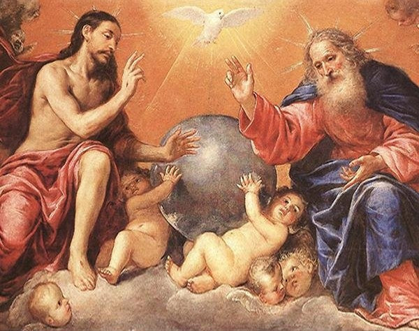 Dos Dioses con Niños sobre Nubes Pintar por Números