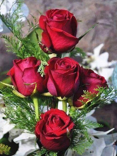 Rosas Rojas Florecientes con Hojas Verdes Pintar por Números