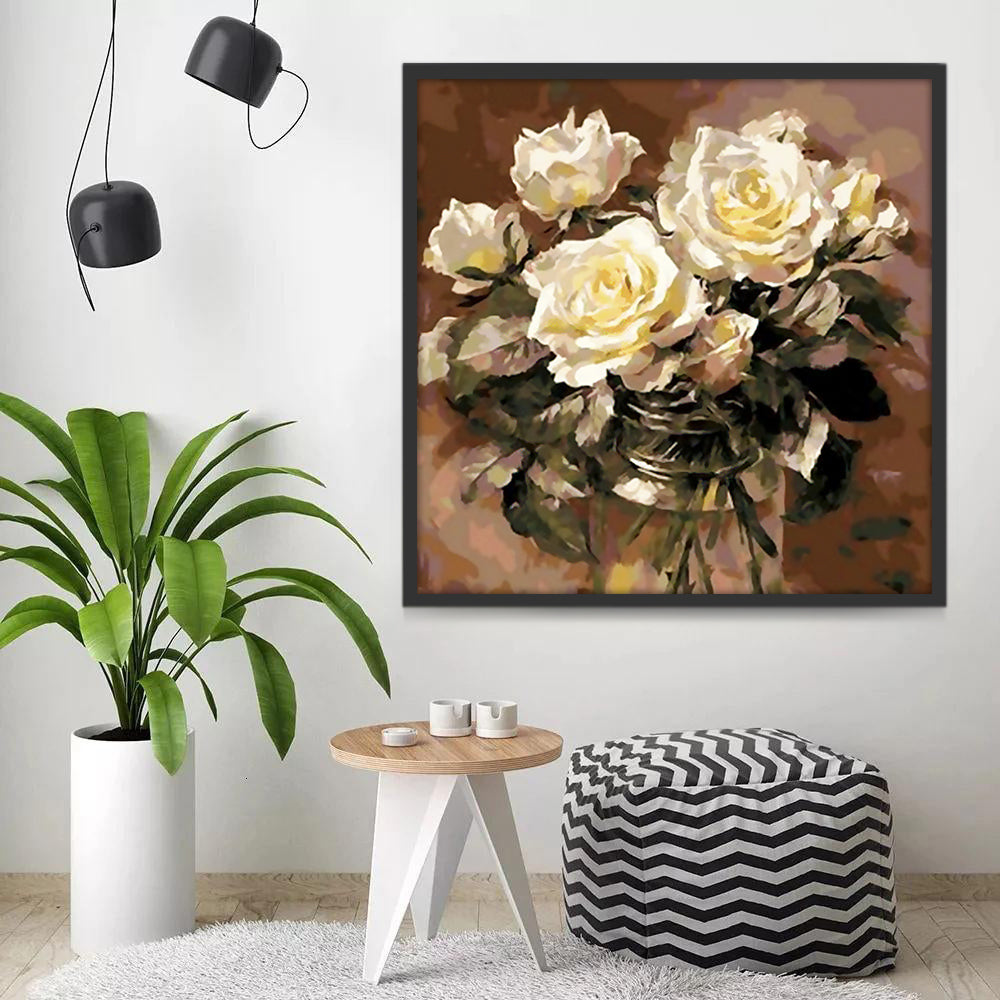 Rosas Blancas Florecientes en Botella de Vidrio Pintar por Números