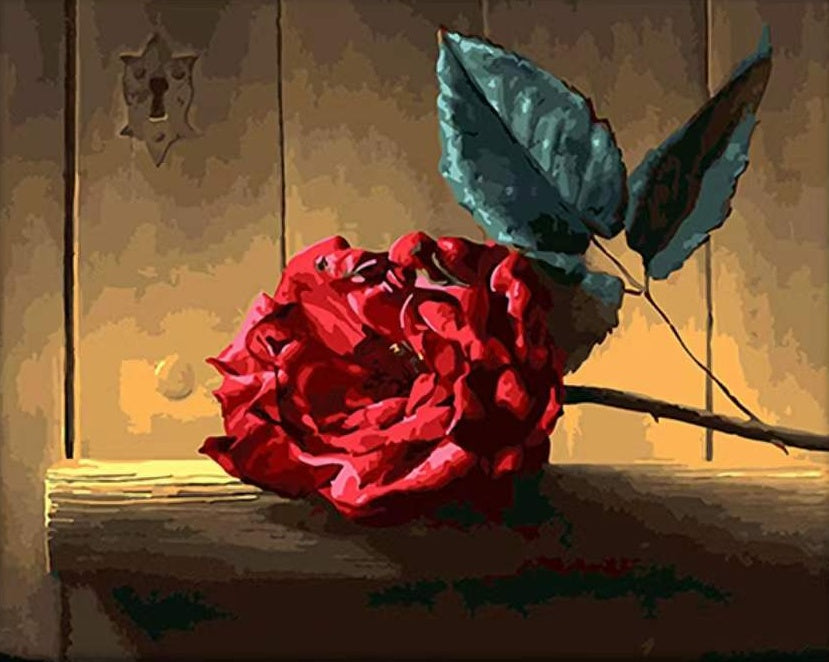 Sola Rosa Roja sobre Fondo de Madera Pintar por Números