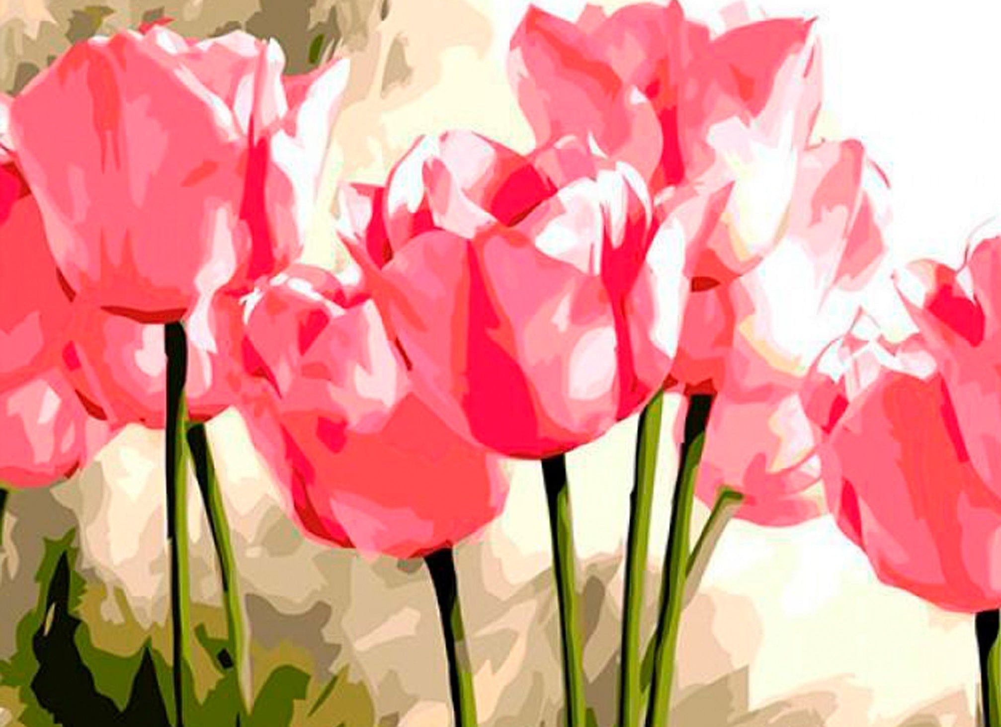 Tulipanes Rosados con Fondo Difuso Pintar por Números