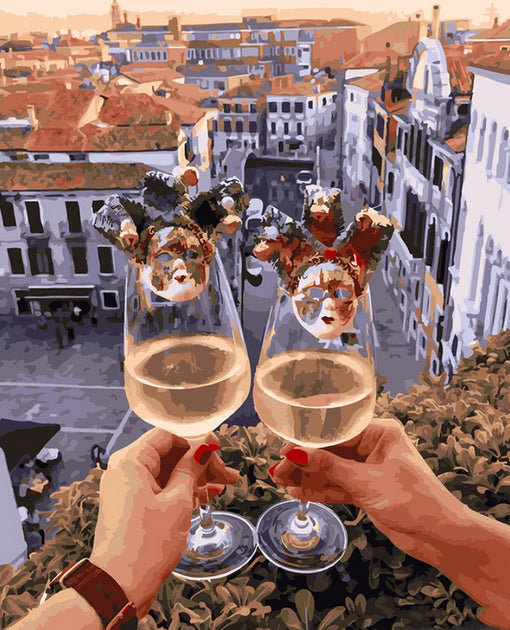 Copas de Vino y Panorama de Ciudad Pintar por Números